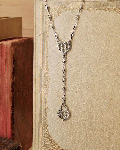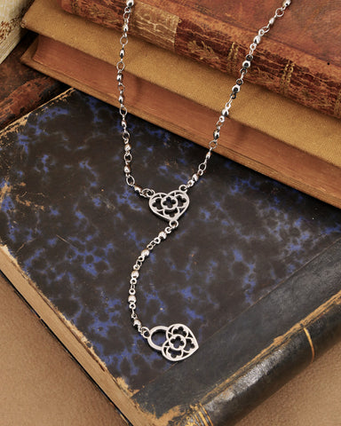 Collana stile rosario in acciaio - Cuore e lucchetto cuore traforato