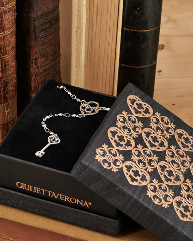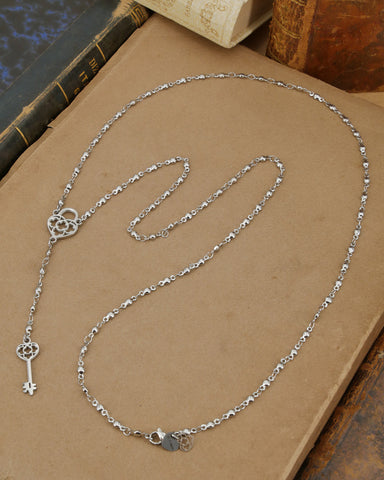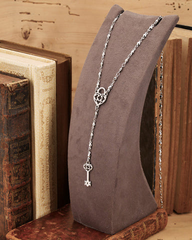 Collana stile rosario in acciaio - Lucchetto cuore traforato e Chiave cuore