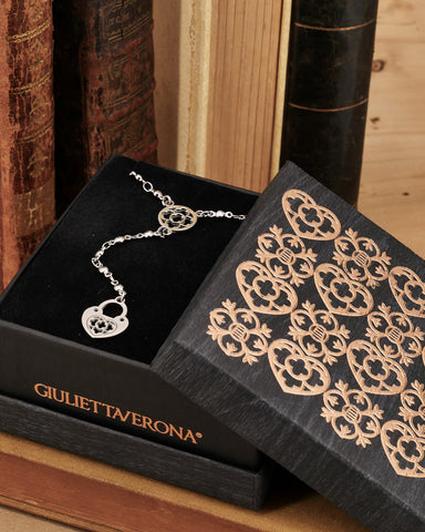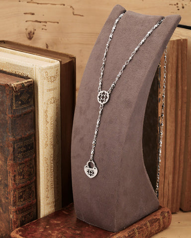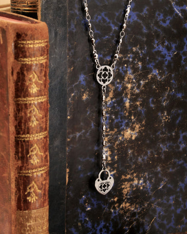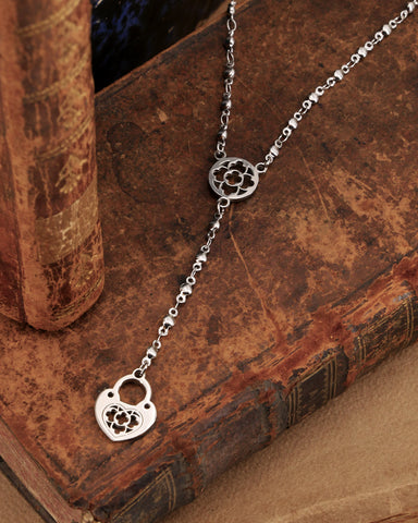Collana stile rosario in acciaio - Rosone e lucchetto cuore