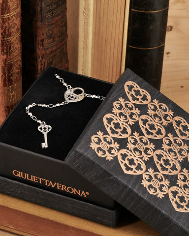 Collana stile rosario in acciaio - Lucchetto cuore e Chiave cuore