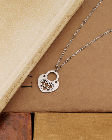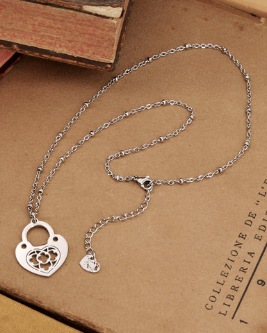 Collana corta con sfere in acciaio - Lucchetto cuore