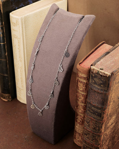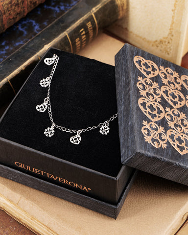 Collana girocollo 12 mini pendenti in acciaio - Cuore e fiore gotico