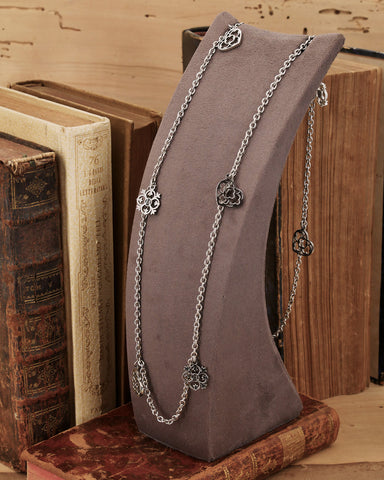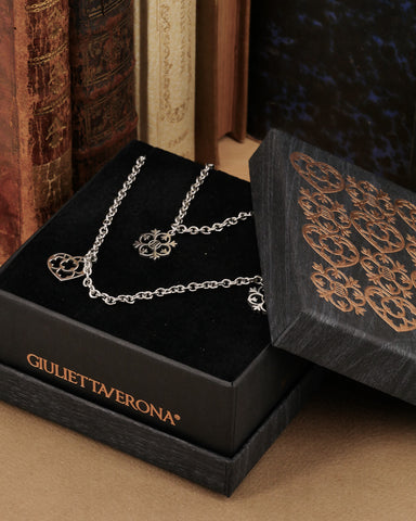 Collana lunga 8 pendenti in acciaio - Cuore e Fiore gotico