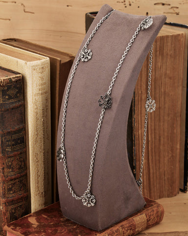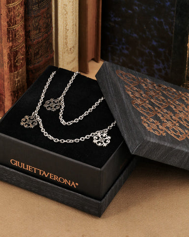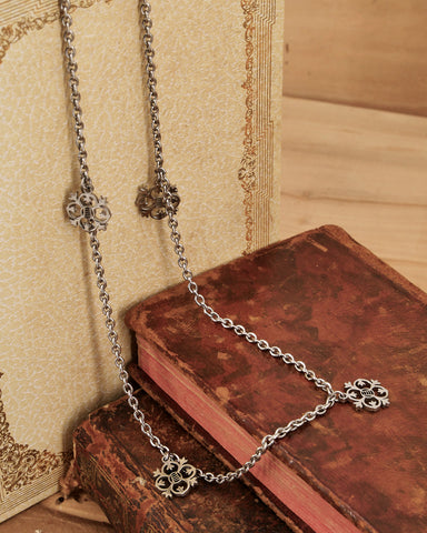 Collana lunga 8 pendenti in acciaio - Cuore e Fiore gotico