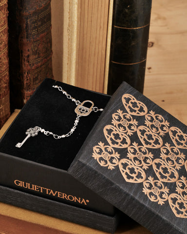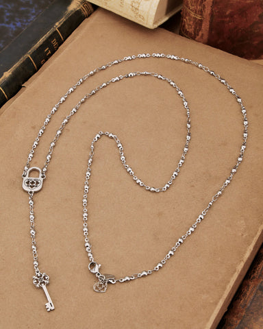Collana stile rosario in acciaio - Lucchetto e Chiave fiore gotico