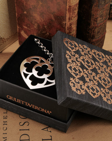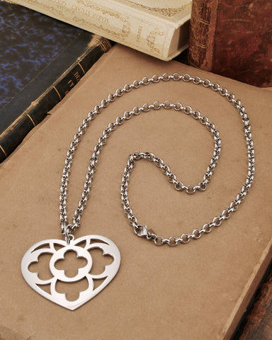 Collana lunga 8 pendenti in acciaio - Cuore e Fiore gotico