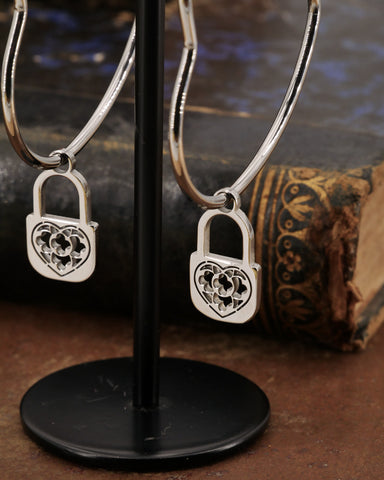 Orecchini cerchio "cuore" in acciaio - Lucchetto