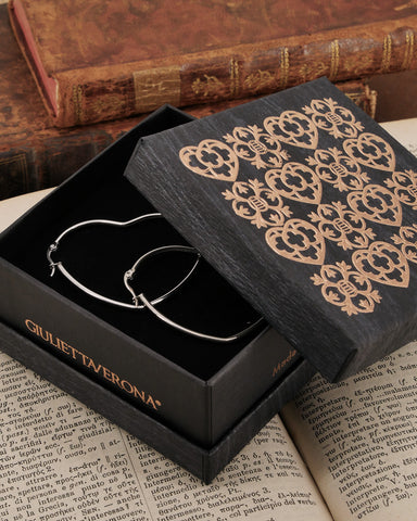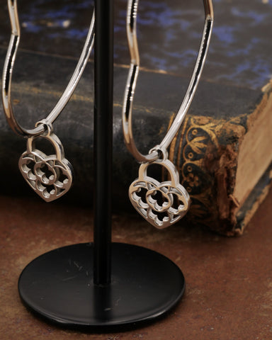 Orecchini cerchio "cuore" in acciaio - Lucchetto cuore traforato