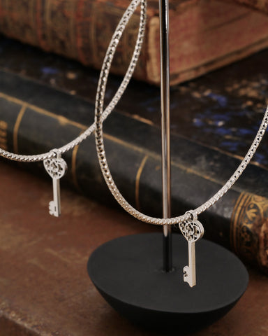 Orecchini cerchio grande diamantato in acciaio - Chiave cuore