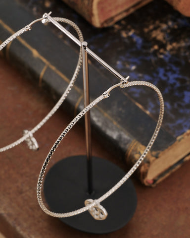 Orecchini cerchio grande diamantato in acciaio - Cuore