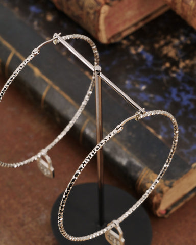 Orecchini cerchio medio diamantato in acciaio - Lucchetto