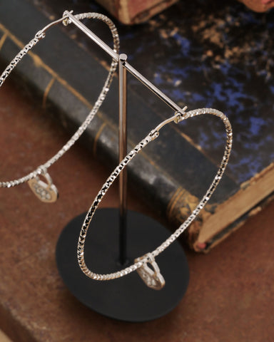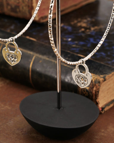 Orecchini cerchio medio diamantato in acciaio - Lucchetto cuore