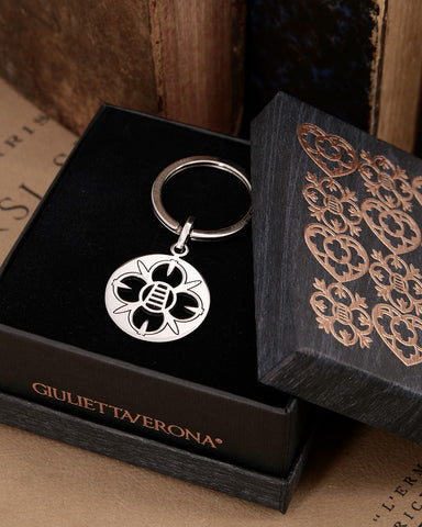 Portachiavi in acciaio lucido - Fiore cerchio