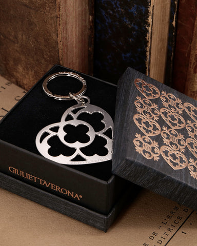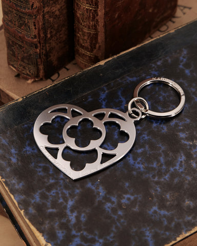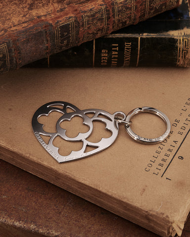 Portachiavi grande in acciaio satinato - Cuore diagonale